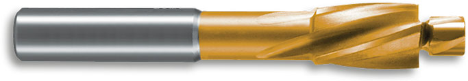 Adancitor pentru gauri strapunse - reper mediu HSS-TiN cu ghidaj fix, prindere cilindrica, DIN 373, RUKO