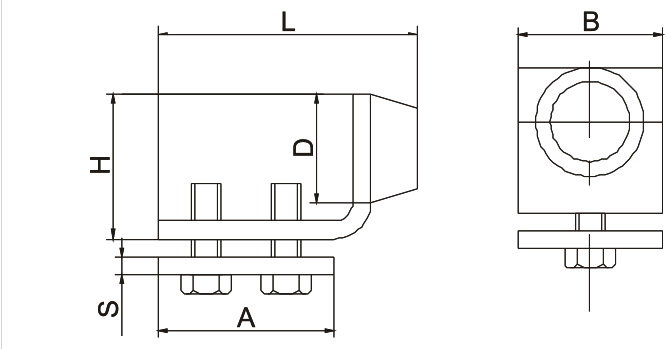A = 49 mm B = 40 mm L = 72 mm H = 35 mm S = 5 mm D = 20 mm |