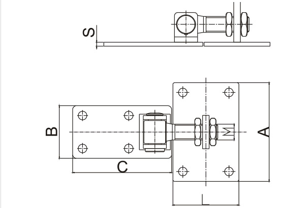 Balama cu placuta patrata, zincata, L 31 - 47 mm, A16 mm, C 55 x 75 mm, Rocast