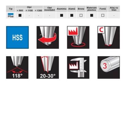 Vârful acestor burghie, de formă conică, permite retragerea facilă a sculei din material, după găurire