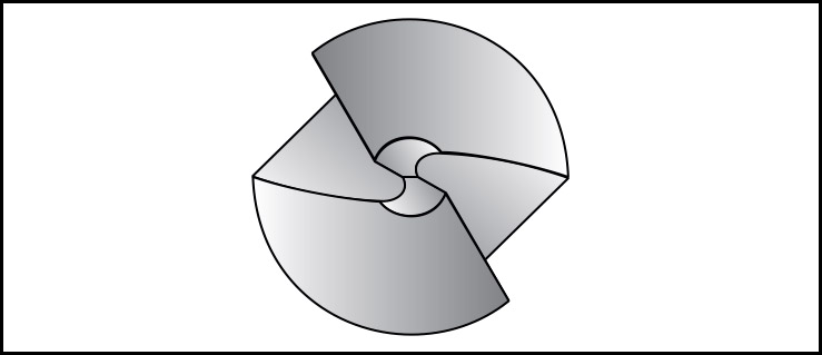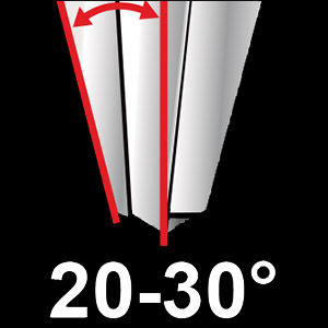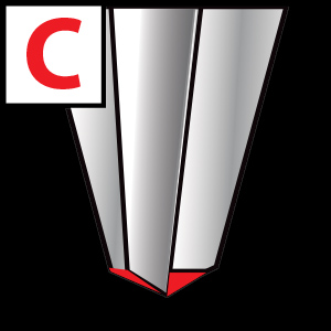 Caneluri drepte sau elicoidale Canelurile burghielor conice oferă o funcționare silențioasă, un înalt randament de tăiere și permit o îndepărtare eficientă a așchiilor rezistente, lungi (care nu se fragmentează) |