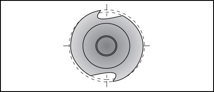 Șlefuirea radială cu freza cu cBN se face corect raportat la diametrul său, astfel că muchia de tăiere este permanent la cel mai înalt punct al diametrului |