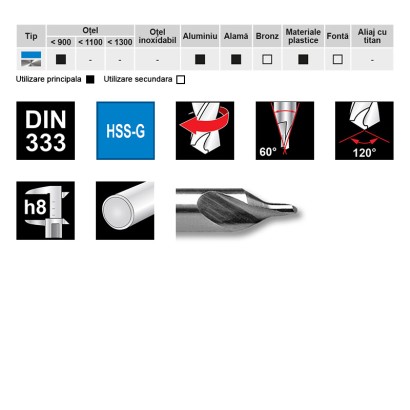 Burghiu de centrare pentru producerea de găuri de centrare de forma A