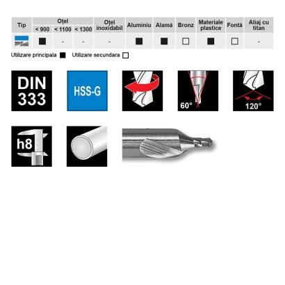 • Burghie de centruire HSS, DIN 333, Forma A cu striu de ranforsare - gama profesionala, RUKO