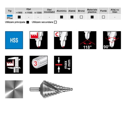 Burghie conice din oțel rapid de înaltă calitate pentru tablă și țevi