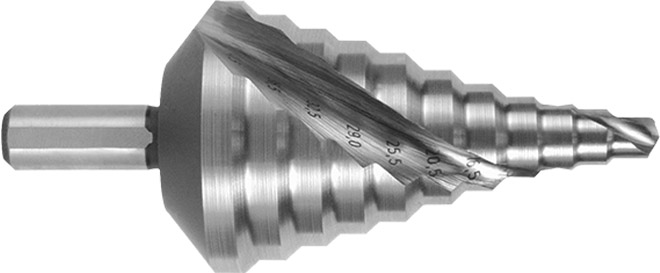 Burghie in trepte, HSS - canale elicoidale cu cBN, varf de centrare, pentru jonctiune de cablu, RUKO