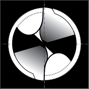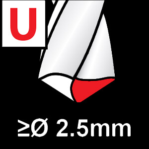 Unghiul elicoidal: 40° Profilul canalului: lat, cu muchiile din spate rotunjite Miez: foarte gros Punct unghiular: 130° Punct de tăiere: Forma U |
