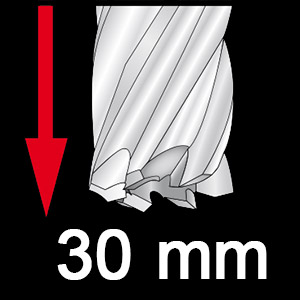 Obiect de lucru: grindă de oțel Material: oțel pt construcții St 37 - 2 Adâncimea tăierii: 12.0 mm Mașină de găurit cu suport magnetic Tăierea cu burghie elicoidale a fost făcută fără pregăurire, direct în material Nu s-au folosit agenți de răcire sau lubrifianți Carotierele RUKO economisesc timp și bani. Carotierele taie după lățimea dinților, iar burghiele elicoidale taie pe toată suprafața transversală a găurii Ca urmare, carotierele sunt mult mai rapide iar raportul în favoarea lor crește cu diametrul (vezi diagrama) Centrarea și pregăurirea nu mai sunt necesare |