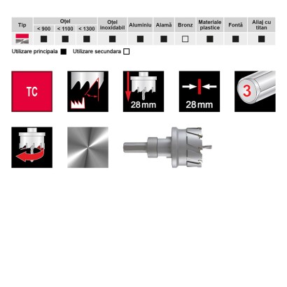 Pot fi utilizate pe mașini de găurit cu suport magnetic sau pe mașini fixe, cu coloană până la max, 20.0 mm în oțel