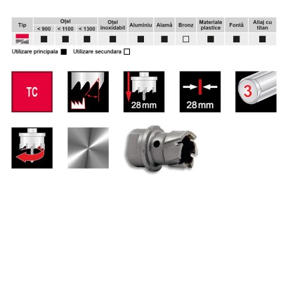 Pot fi utilizate pe mașini de găurit cu suport magnetic sau pe mașini fixe, cu coloană până la max, 20.0 mm în oțel