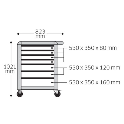 Dulap mobil pentru scule, 7 sertare, model 95/7B, culoare albastra, L x l 823 x 1021 mm, capacitate de incarcare 750 kg, Stahlwille