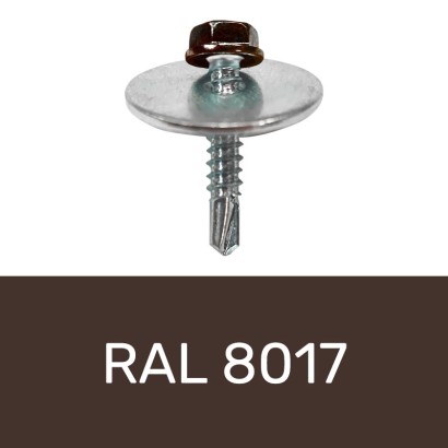 Set de prindere policarbonat pe structura metalica, zincat/RAL 8017, surub 4.8 x 25 mm, saiba Ø5.3 x 25 x 1.5 mm, Rocast