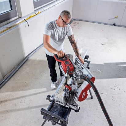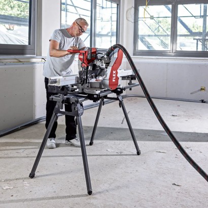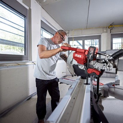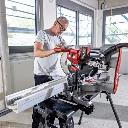 Șinele de ghidare permit lucrul aproape de perete și facilitează transportul