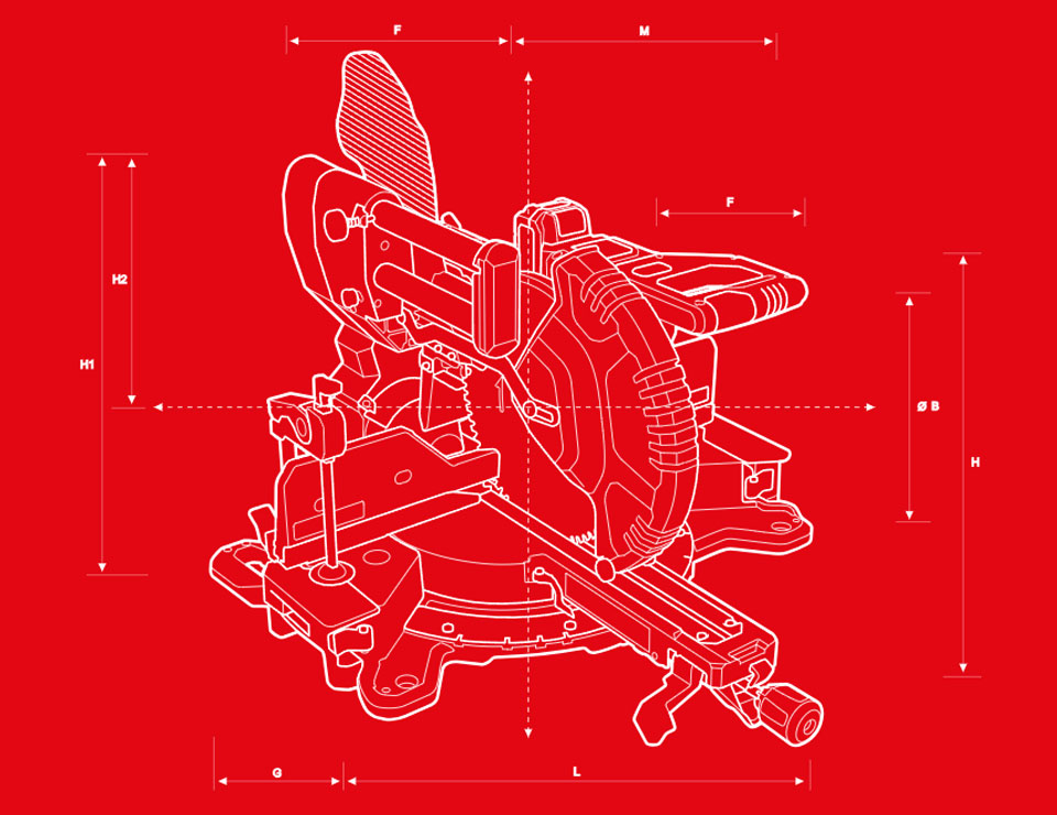 Fierăstrău circular cu prereglare a unghiului: 0° / 15° / 22.5° / 31.6° / 45°