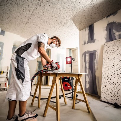 Ghidaj dublu al lamei de ferăstrău pentru tăieri precise chiar și în unghi (0 - 45°)