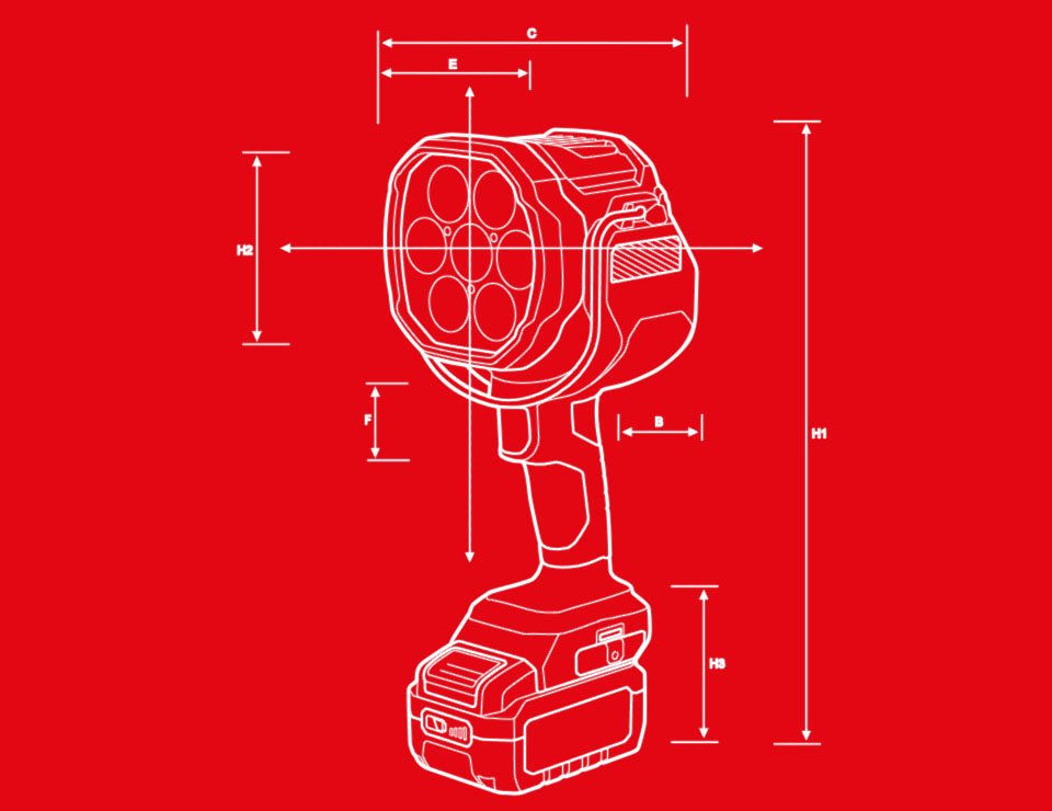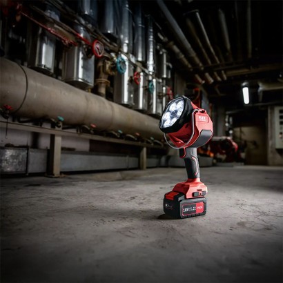 Reflector LED puternic fără fir cu 2 niveluri de luminozitate, 2800 lumeni cu o rază de acțiune de 630 m și 1000 lumeni, plus un LED roșu suplimentar pentru reducerea împrăștierii și efect orbitor