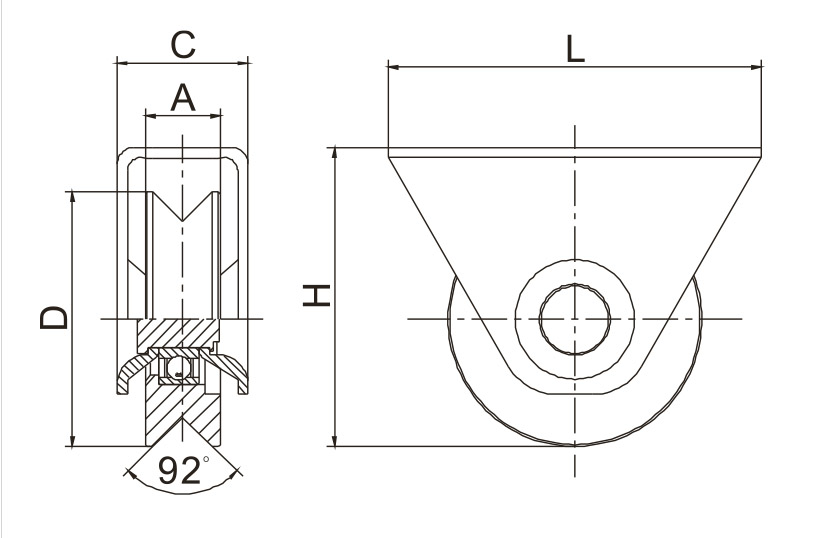 Roata culisanta cu un rulment, zincata, D58 mm, 17 x 26 x 10 mm, max. 100 kg, suport interior, profil V, Rocast