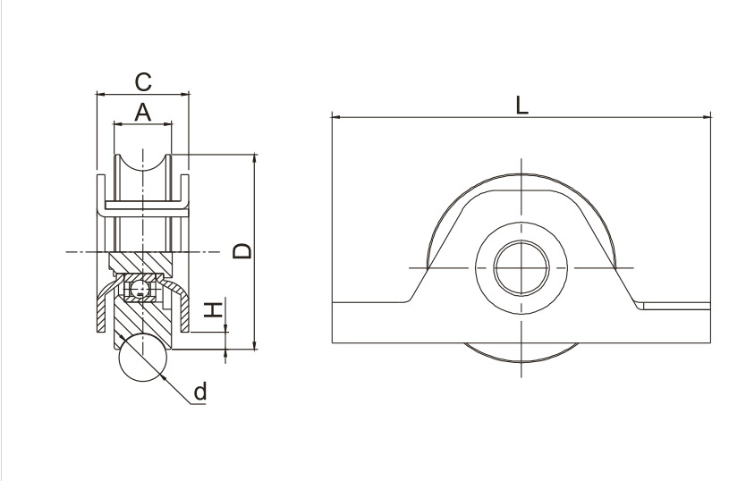 Roata culisanta cu un rulment, zincata, D58 mm, 17 x 26 x 10 mm, max. 100 kg, suport interior, profil U, Rocast