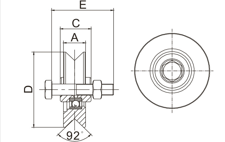 Roata culisanta cu doi rulmenti, zincata, D118 mm, 30 x 42 x (M14 x 70) mm, max. 360 kg, fara suport, profil V, Rocast