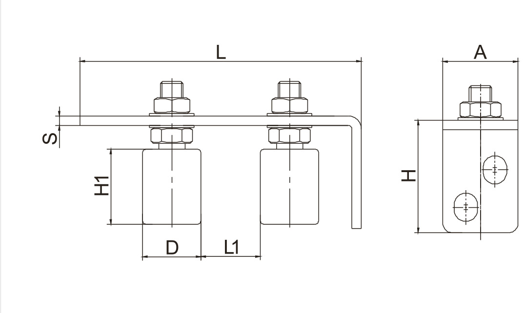 D = 30 mm H1 = 40 mm A = 40 mm H = 60 mm L = 150 mm S = 5 mm L1 = 8 - 68 mm |