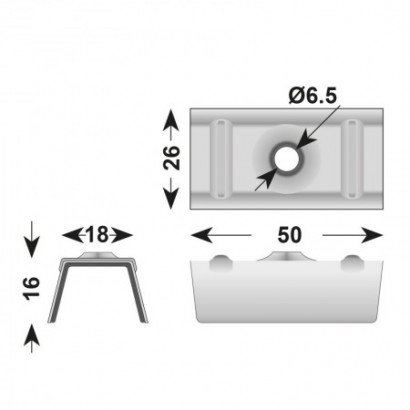 Saiba de coama cu garnitura din cauciuc EPDM cu polietilena expandata marimea 15, Ø6.5 x 26 x 50 x18 x16, Rocast
