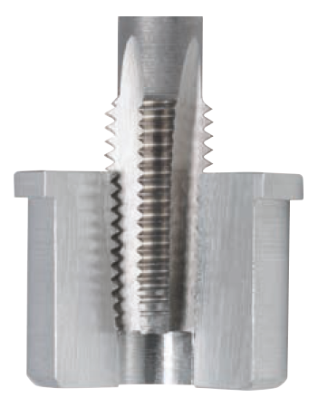 4. Înlăturarea terminației inserției Se scoate scula de inserție și se îndepărtează terminația inserției prin presare cu ajutorul sculei speciale de desprindere a terminației sau, pentru filete mai mari de M12 (1/2”), cu clești mecanici cu fălci lungi Noul filet este mai precis și mai rezistent decât filetul original |