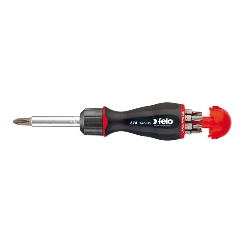 Surubelnita 8 in 1 cu comutator de insurubare cu moment de torsiune maxim > 24 Nm, 3 x Slot, 3 x Philips, 2 x Pozidriv, Felo