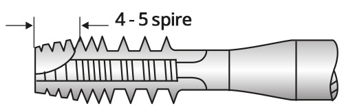 Filet alternant, filet de intrare cu 4-5 spire teșite, vârf elicoidal, pentru găuri străpunse