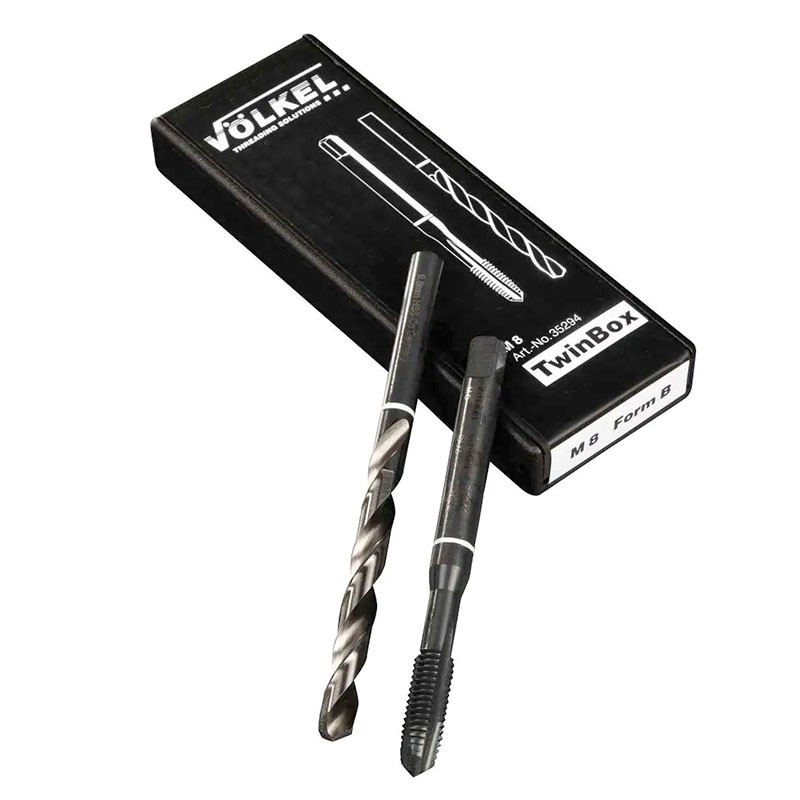Set TwinBox, tarod HSS-E VAP, banda alba + burghiu, forma B, DIN 371-376, VOLKEL