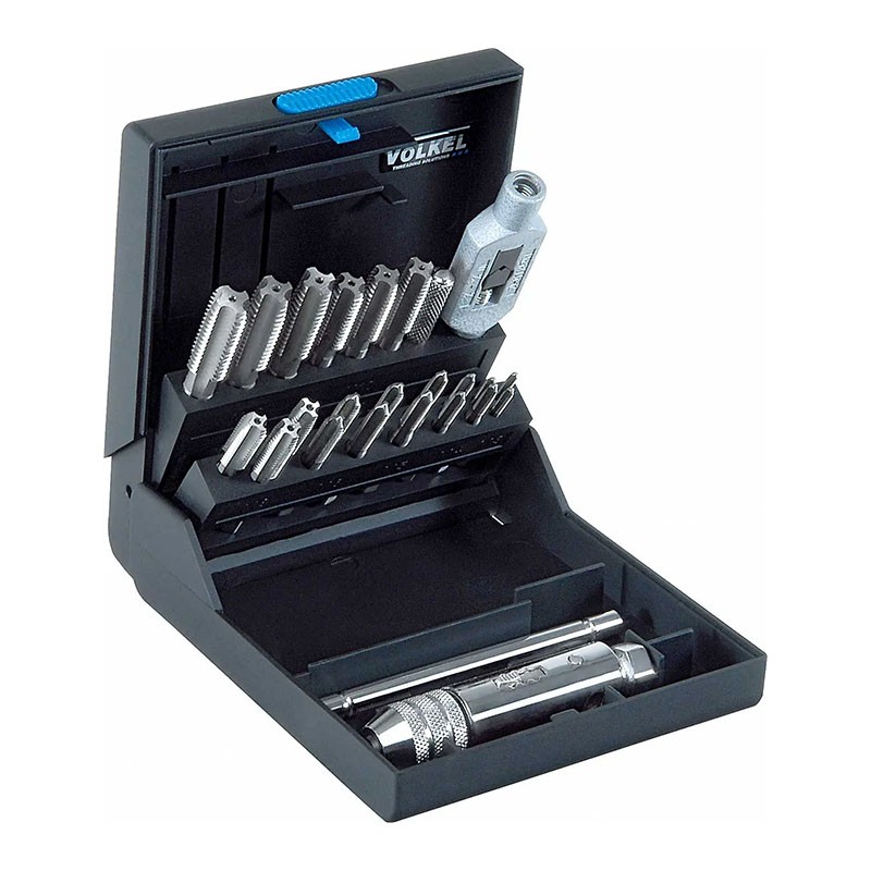Trusa pentru filetare cu tarozi de mana, HSS-G, set 23 piese, filet metric, pentru gauri strapunse si infundate, Volkel