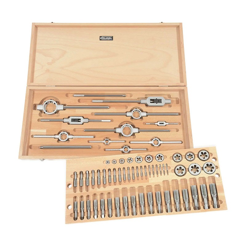 Trusa filetare cu tarozi de mana si filiere, HSS-G, 62 piese, filet pe dreapta, gaurire strapunsa si infundata, Volkel